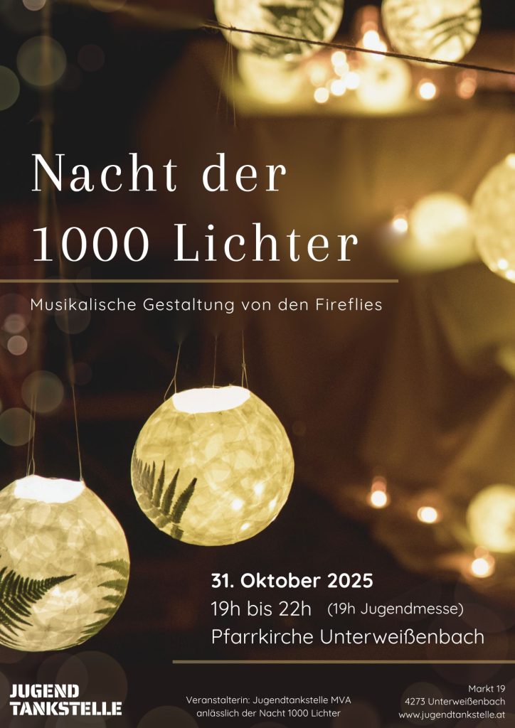 Freitag, 31. Oktober 2025 von 19-22h in der Pfarrkirche Unterweißenbach Die Nacht der 1000 Lichter ist eine vorabendliche Feier von Allerheiligen. Am Abend des 31. Oktober erstrahlen in vielen Pfarren…